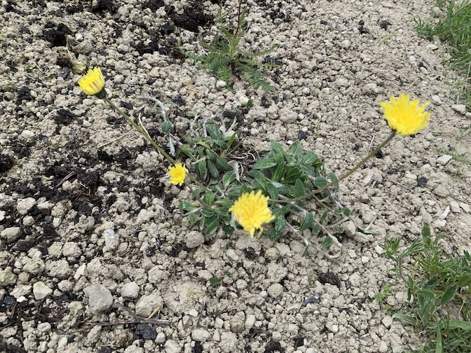 The good news is that the horseshoe vetch which we planted in the flat area is still alive and now has flowers! There are also flowers on the salad burnet. I have purchased 12 more plants from the farm but we did not have the time or energy to put them in today. I bought 3 vipers bugloss, 2 St John’s wort, 2 sainfoin, 1 rough hawkbit, 1 more small scabious, 2 lady’s bedstraw and a bird’s foot trefoil. When we find some more time and energy we will clear another patch and put them in. I am also considering planting two more areas of horseshoe vetch if what I have done with the first patch of three plants continues to work.