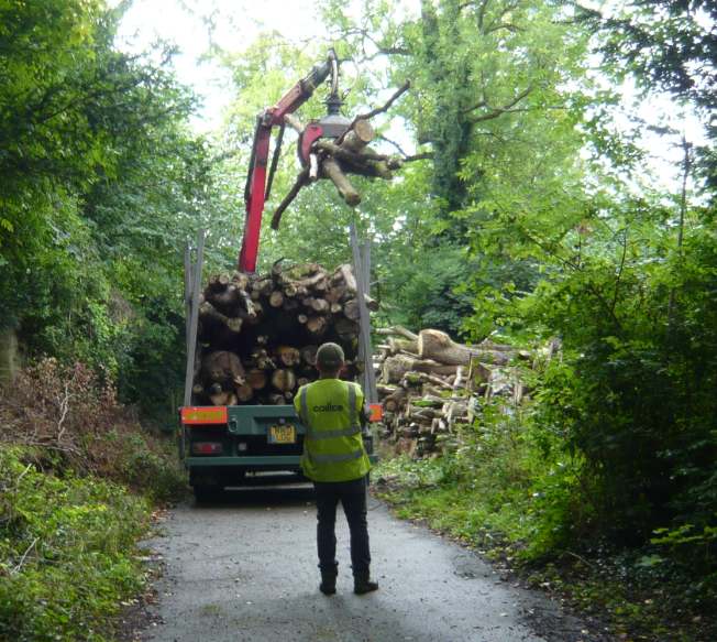 Simon Levy (foreground) was supervising the loading by the log store this afternoon. Manipulating that crane is a skilled job - nothing like as easy as picking up sticks! The log store has been especially well stocked this year and as the logs are such uneven sizes the task is especially difficult.