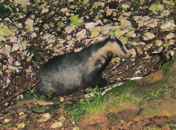 We were congratulating ourselves when it stopped and walked slowly in a wide circle. It then came out onto the main path, sniffed at our boots and then set off determinedly back along the main path in the opposite direction. It passed the sett I had chosen without hesitating and disappeared in the direction of the other sett I had considered. It appeared to know where it was going.