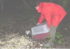 July 2012 – Badger Rescue and Release – story & photograph from David Malins - In early July a young badger, about 6 months old, was injured by a car in Linton Glade. A concerned person called the RSPCA who collected the badger and took it to Wildlife Aid animal hospital in Leatherhead. The badger seemed to have suffered mild concussion and quickly recovered. Two days rest and good food confirmed it was ready to go home. The next job was to release the badger near a sett close to its accident.