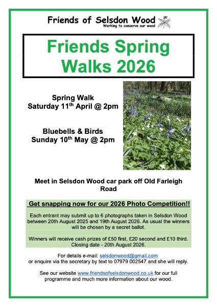 24th April - Springtime Walk through SW/Loop/Kingswood 10am 3 hour walk 5 miles with Marion Davis - Discover Spring’s new growth - fresh new leaves and glorious spring flowers.Stroll for 3 Hours, 5 miles through Selsdon Woods along part of the London Loop Section 4, into King's Wood and back. Join Marion Davis (Friends of King's Wood)