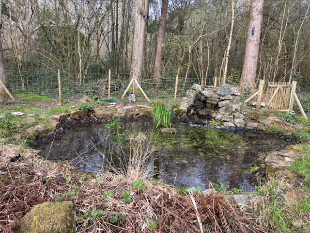 As we are hoping to have a charcoal burn in June, we retained the bigger material that was cut and soon built up a large pile of what we hope is suitable material from which to make charcoal. Thinner branches went on to a fire and we had enough to keep the fire going while we were there. The evidence of our work can now be seen in the ever growing open space which is developing and in which we hope that regrowth will produce a wildlife friendly bit of woodland. Bluebells are already bursting through the soil and there are signs of Foxgloves.