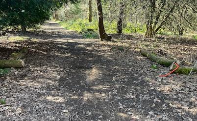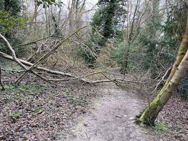I was told this morning by a dog walker that the Vale Border path (between Quail Gardens and the Kingfisher Gates) was blocked with a tree fall. Since I had the morning free, I went with my tools and cleared it.