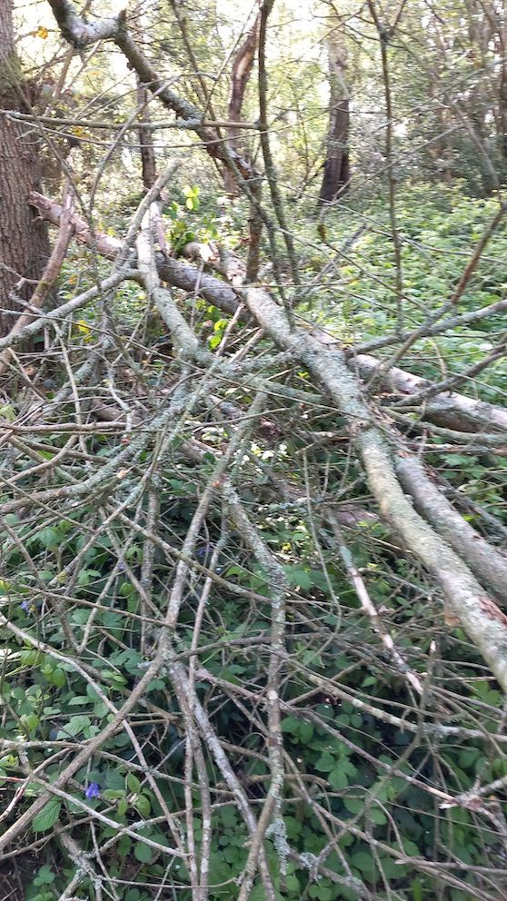 We spent two hours in the woods yesterday, primarily picking up litter, but also clearing large branches etc from some paths.