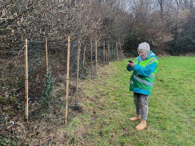 On our route back we pulled more saplings and treated what we cut earlier on. There are a few still to remove on the corner of Courtwood Lane and the bridle path but we will do those next time.