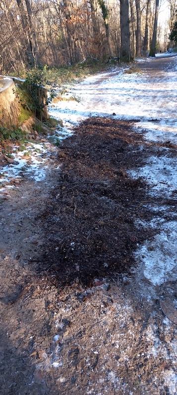 We didn't get as far as the Glade to try to dig up surplus ferns which are blocking view as the party didn't include any 'good diggers' or, unfortunately, shift any of the wood chippings, as Greenhill Way seemed quite level and dry and I was uncertain really where they would be best used without added protection of some ballast.